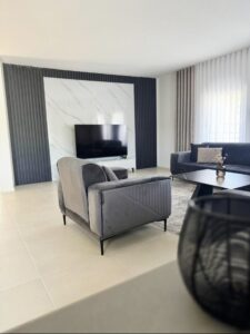​L’intérieur de la bâtisse a été rénové avec un très bon goût, privilégiant des espaces de vie harmonieux et une esthétique soignée :